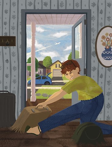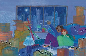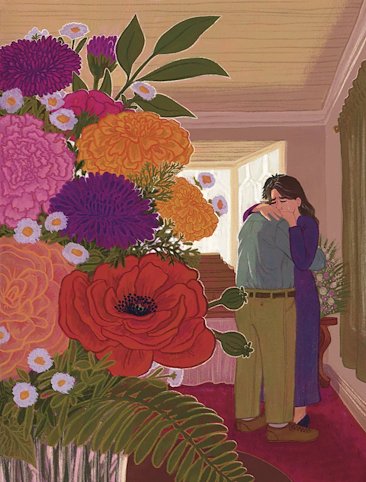 A spot illustration for a story where a women reminisces on how she ended up with her husband.