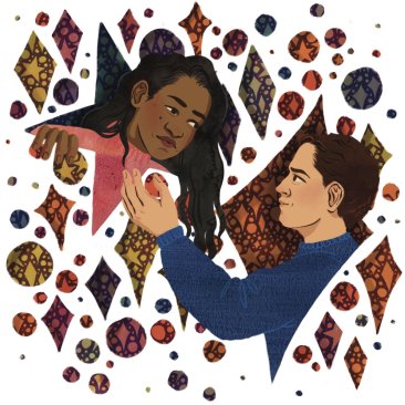 A spot illustration for a story where a women reminisces on how she ended up with her husband.